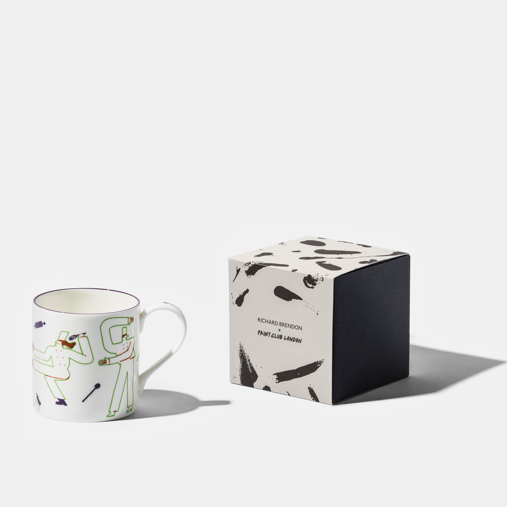 Richard Brendon’s partnership with Print Club London pays homage to a somewhat forgotten historic tradition, where British ceramic brands would showcase the work of exceptionally talented emerging artists and bring their work to life in a new medium, resulting in fresh and unexpected products. Each of the mugs in this collection are skilfully hand crafted in Stoke-on-Trent, where screen-printed artwork is applied to the bone china and the rims are finished with a simple hand-painted line.