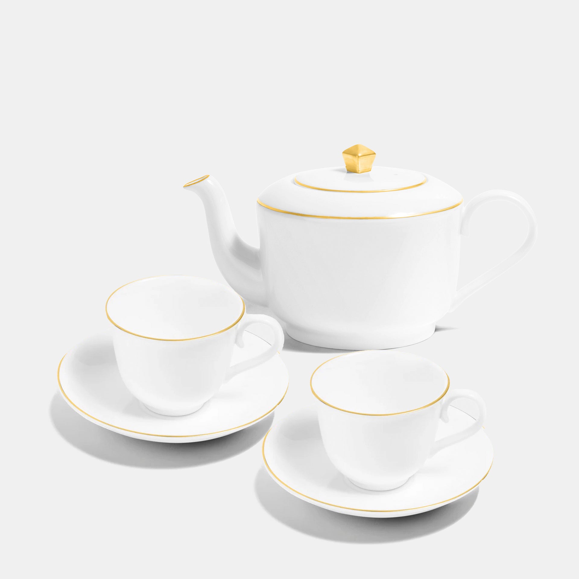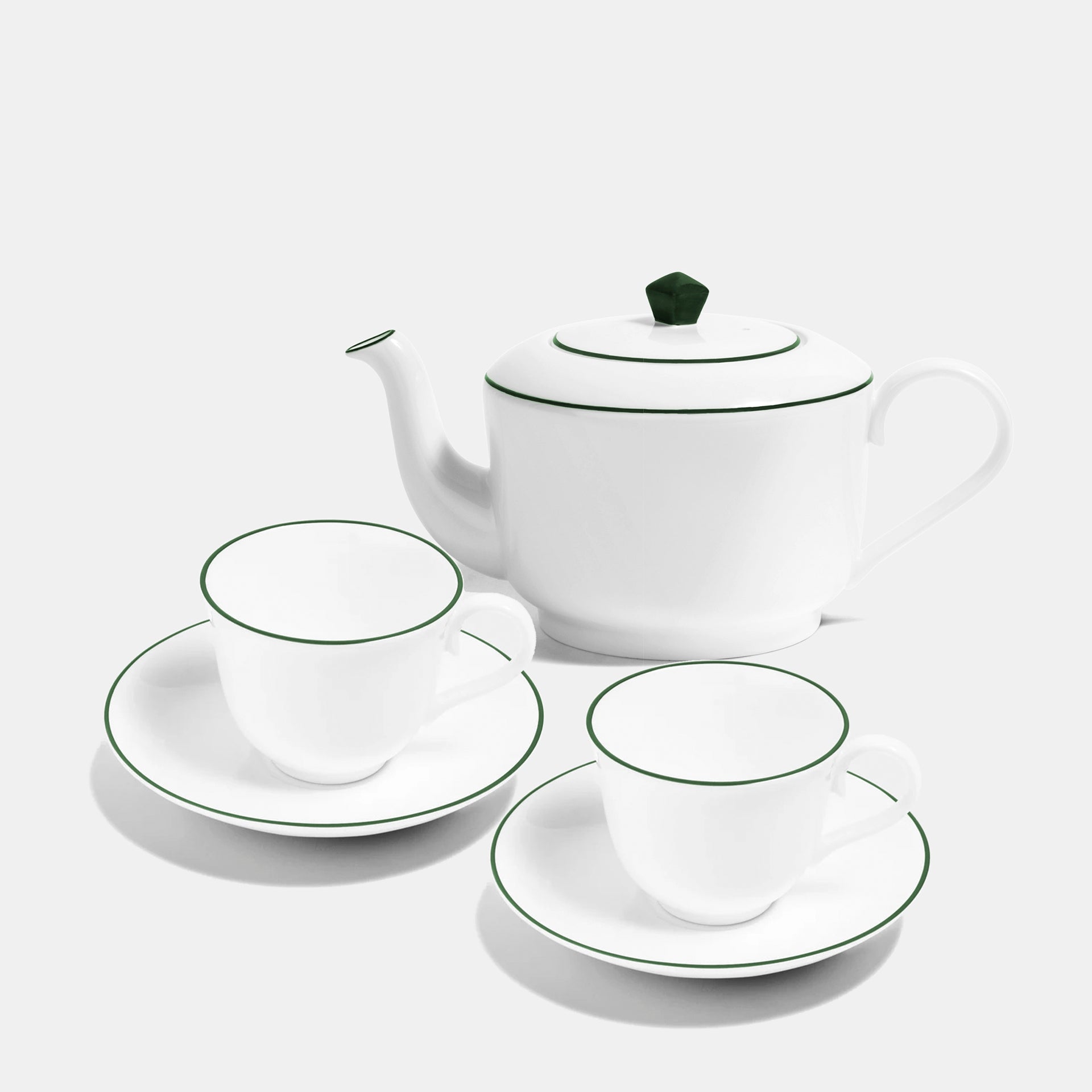 2 x Line Teacups & Saucers and a Teapot in a colour of your choice.