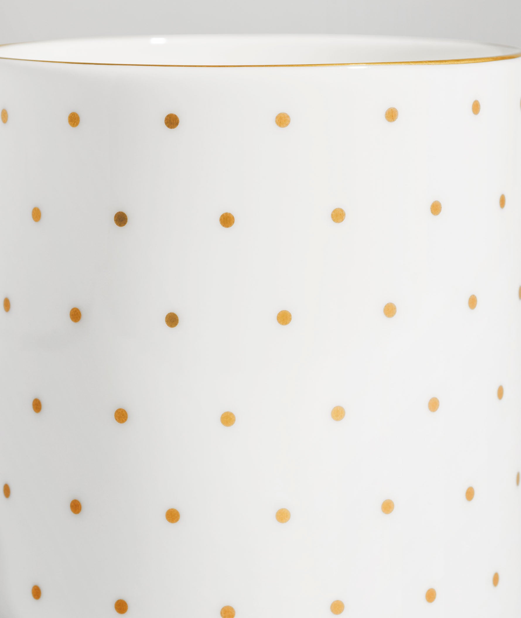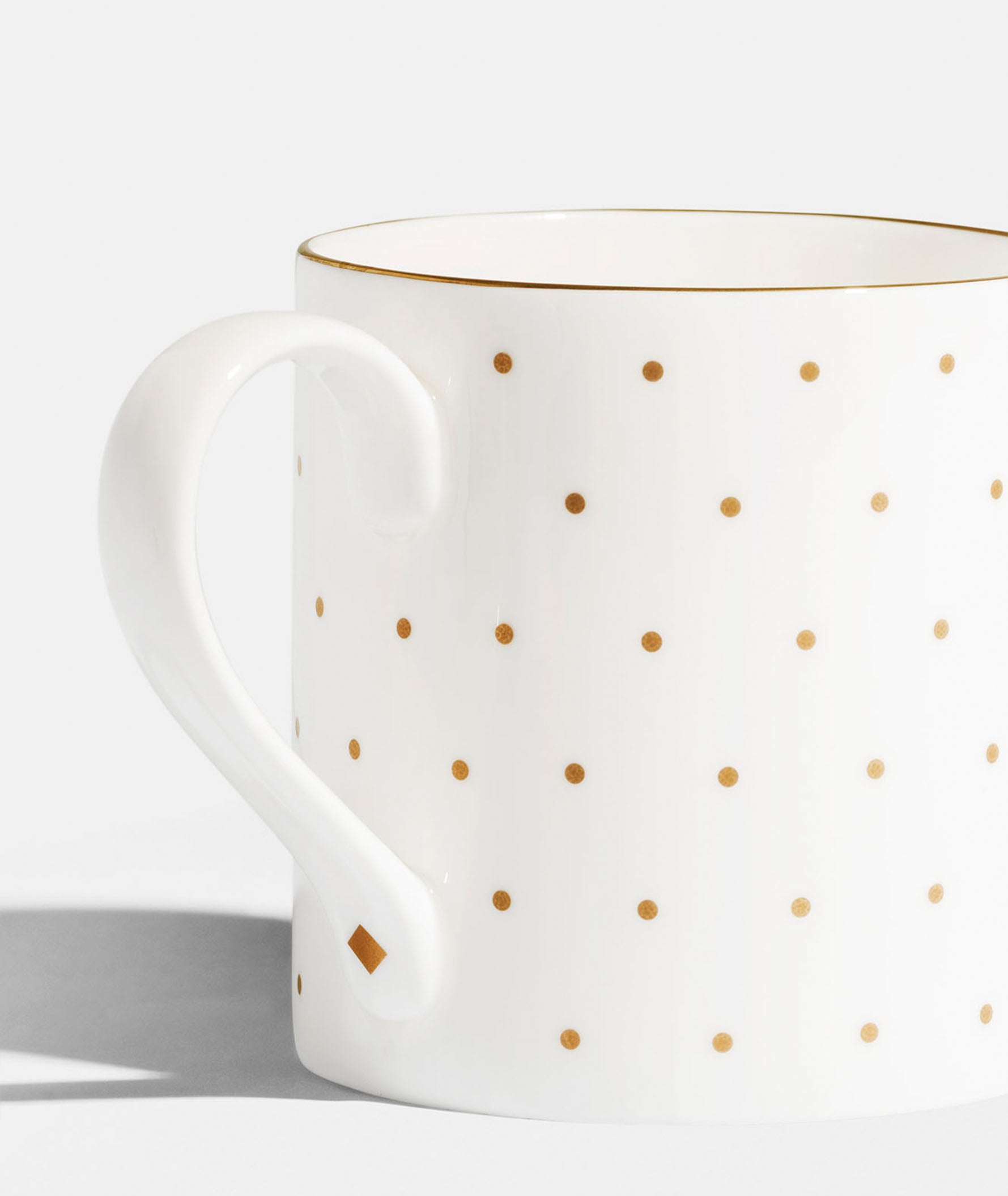 The wonderful thing about bone china is it is incredibly easy to clean, which makes it perfect for everyday use. We would recommend hand washing our Gold Polka Mug.